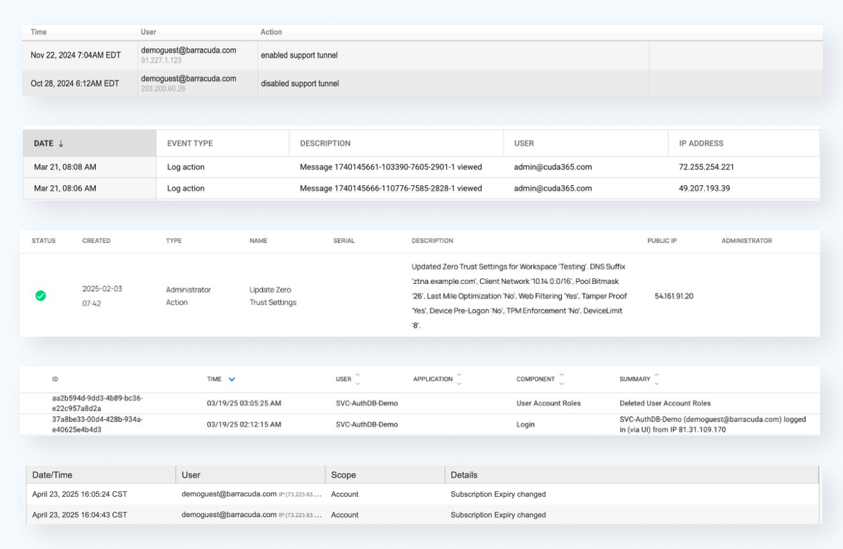 A universal audit log pattern that covers use cases across all Barracuda products. The pattern will be component-ized as part of the design system so that future iterations remain consistent across products.