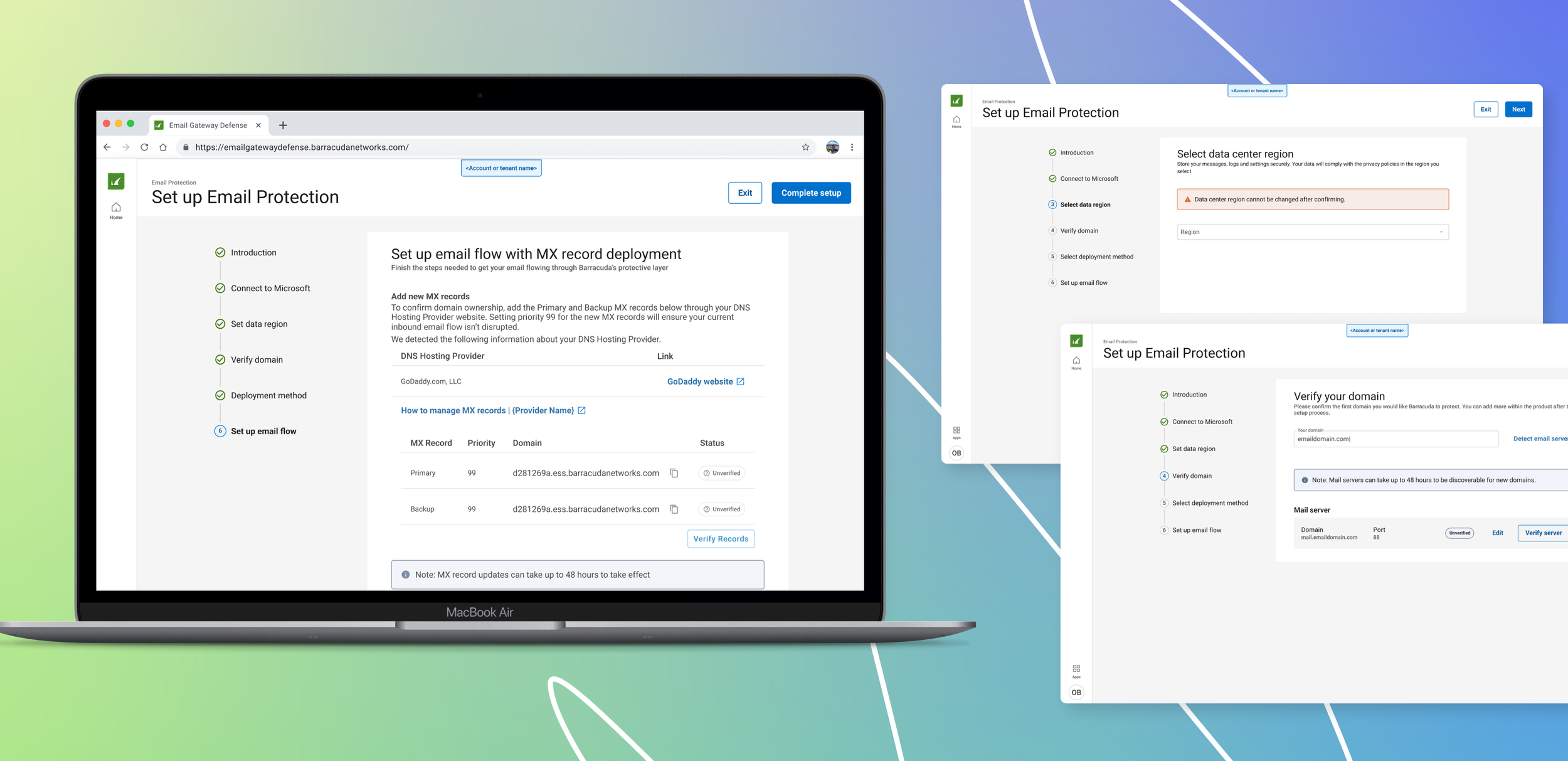 A single setup experience for Email Protection’s core products— 3 separate setup experiences completed in one flow